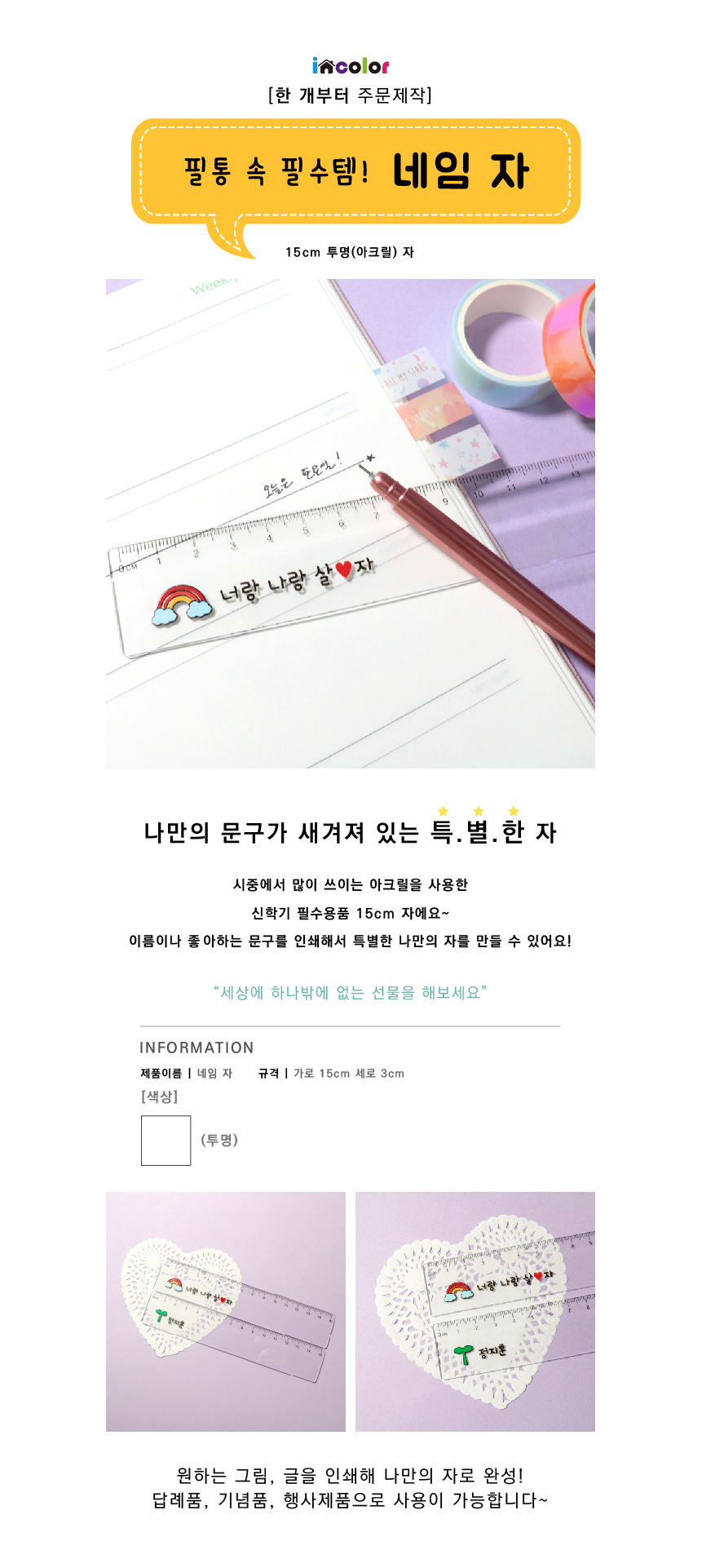 [회원] incolor 네임 15cm 자 / 한 개부터 주문제작
