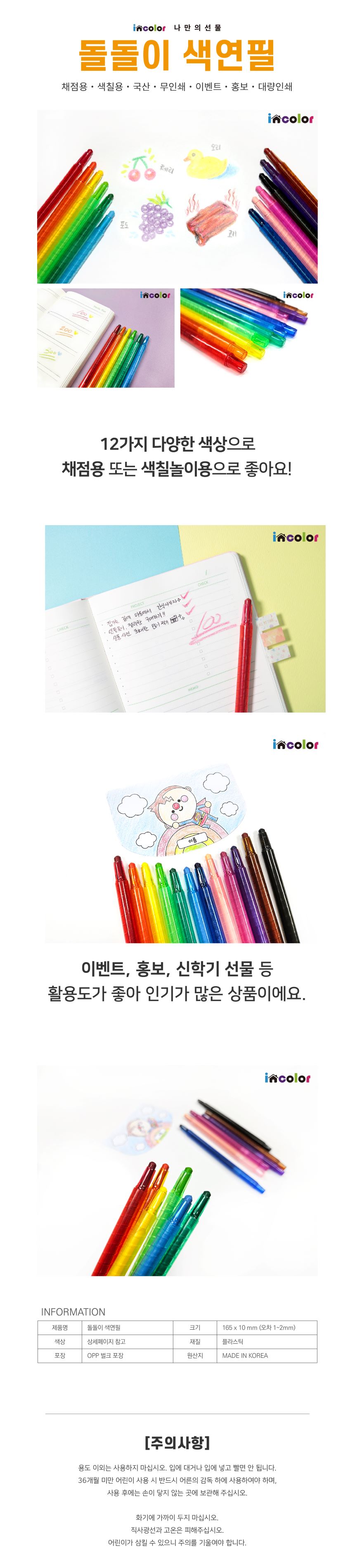 [회원] incolor 잘 써지는 돌돌이 색연필 국산 채점용 색칠용