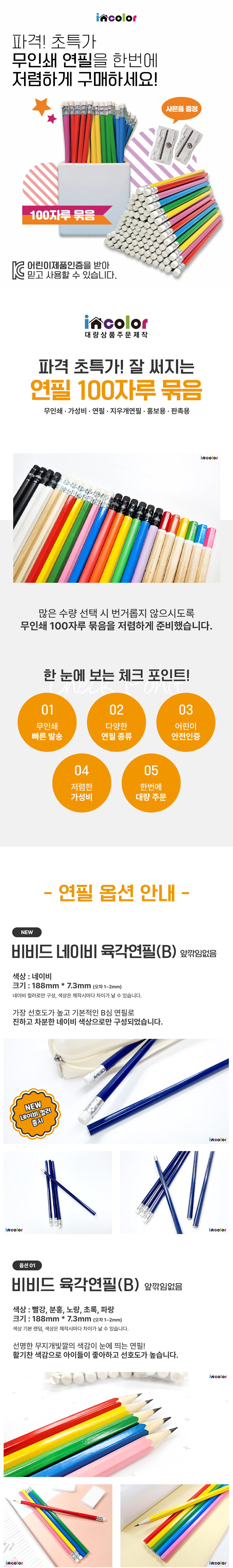 incolor 파격 초특가 잘 써지는 연필/ 지우개연필 100자루 묶음 (인쇄불가)